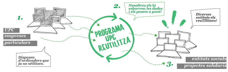 La iniciativa se suma a la tasca consolidada del Programa UPC Reutilitza que recupera mitjançant la participació d’estudiants ordinadors de la universitat per cedir-los a projectes amb finalitat social.